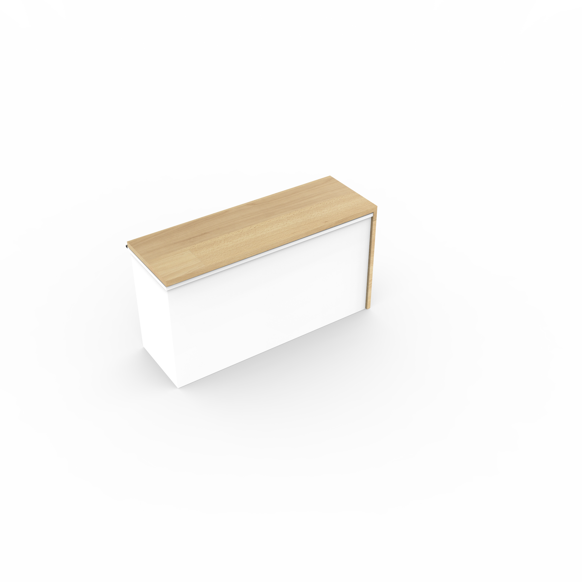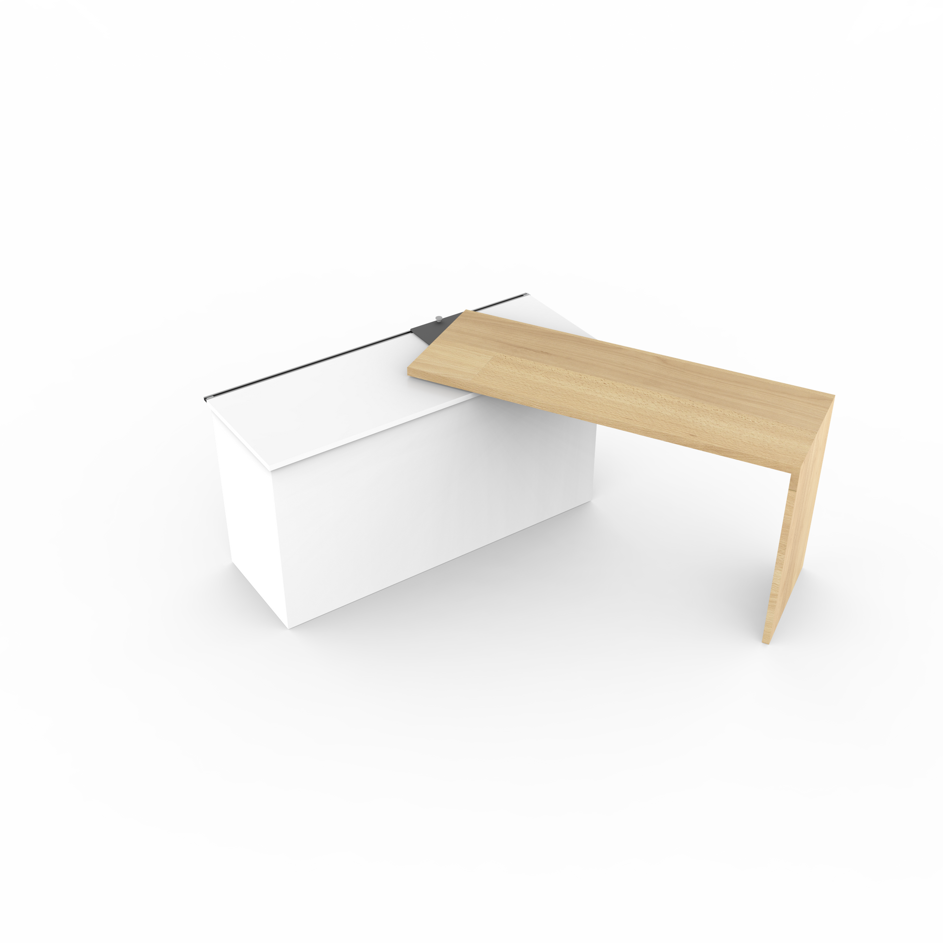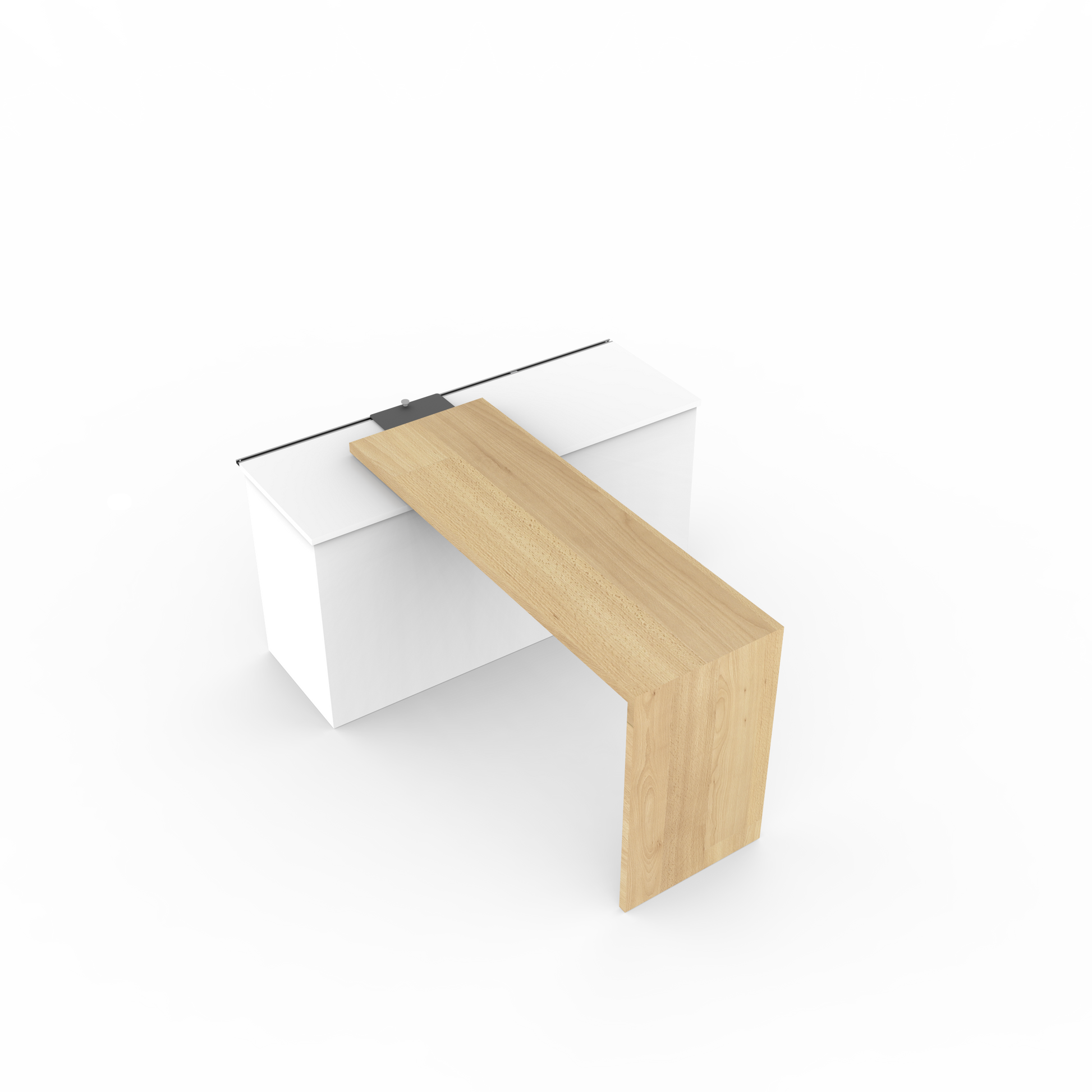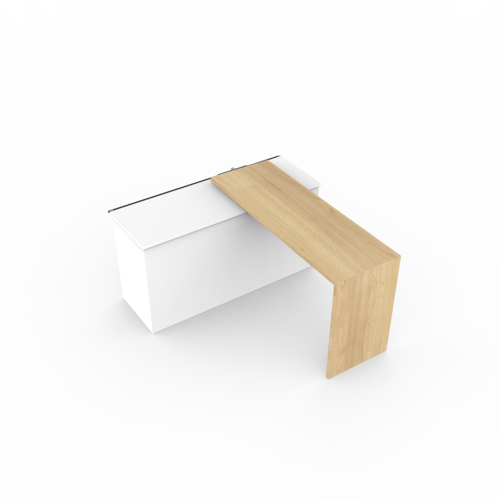 Aus der geschlossenen Position lässt sich der obere bewegliche Tisch oder die Küchentheke seitlich verschieben, um neben dem feststehenden Möbel einen Arbeitsbereich zu schaffen. In jeder beliebigen seitlichen Position kann der rechteckige Tisch oder die Küchentheke mit unserer einzigartigen Pull-Turn-Push Bewegung auch zunächst von einschränkenden Wänden weggeschoben, dann um 90 Grad gedreht und in die offene Position geschoben werden. In der offenen Position kann der Schreibtisch oder die Bank wiederum seitlich entlang des Möbels verschoben werden. Wenn Ihr Schreibtisch oder Ihre Theke nicht verwendet wird, lässt dieser sich mit unserer einfachen Pull-Turn-Push Bewegung oder durch seitliches Verschieben einfach verstauen, je nachdem, in welcher Position der Schreibtisch zuletzt verwendet wurde.