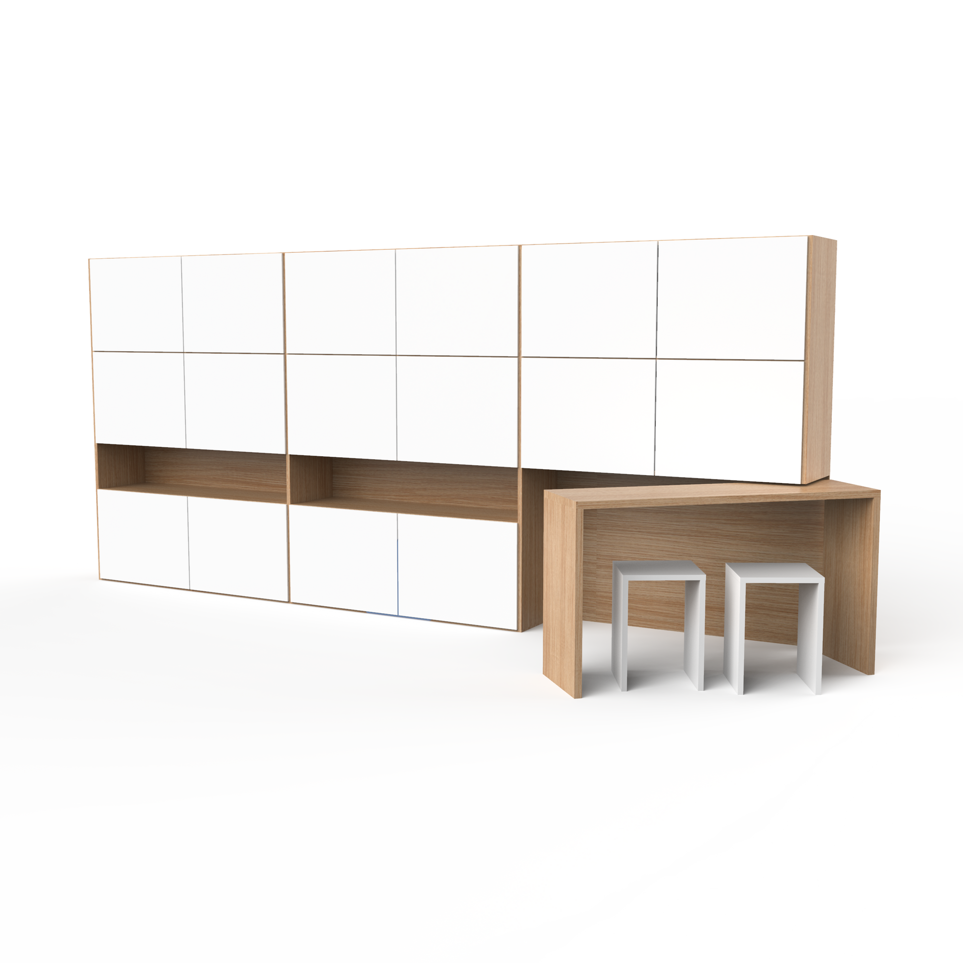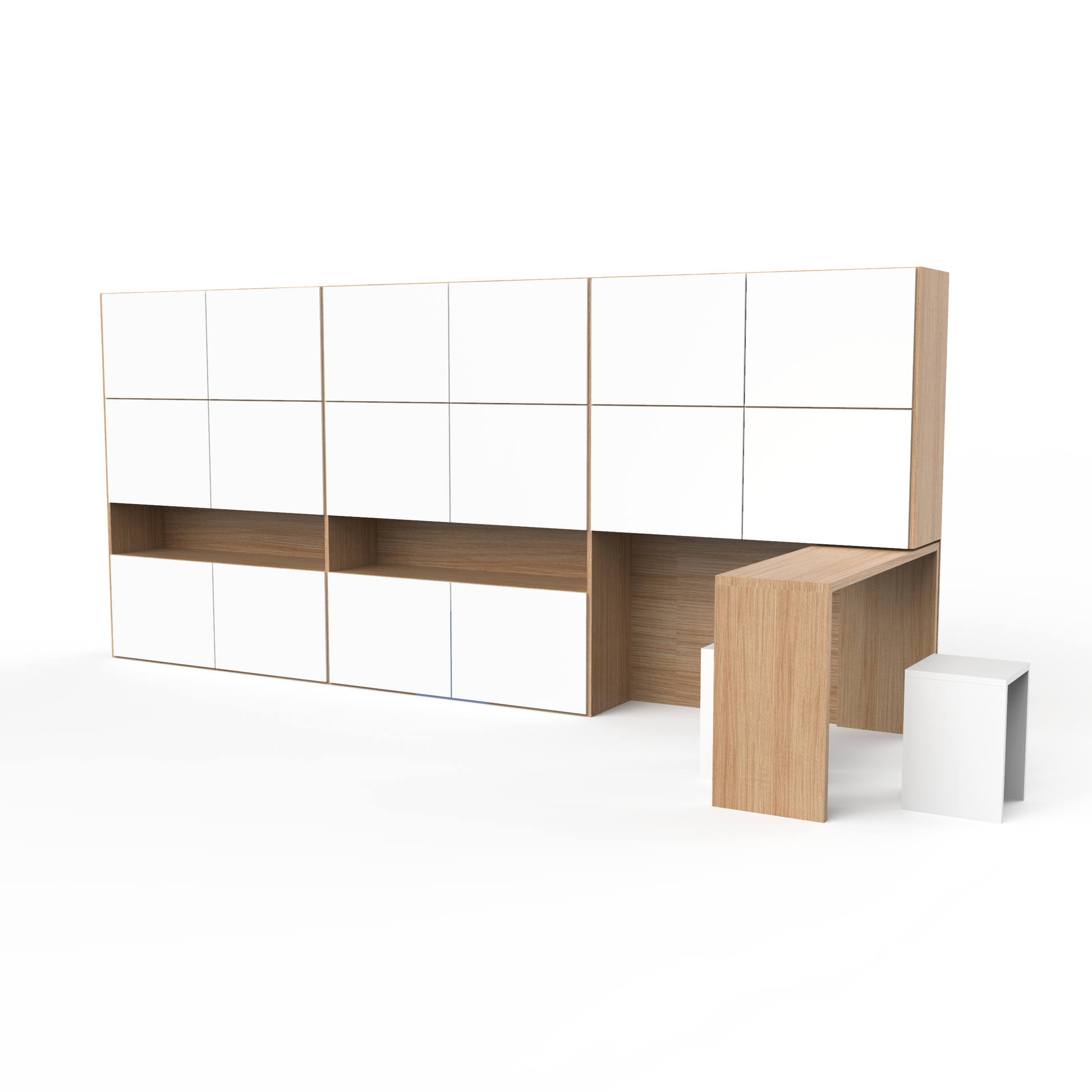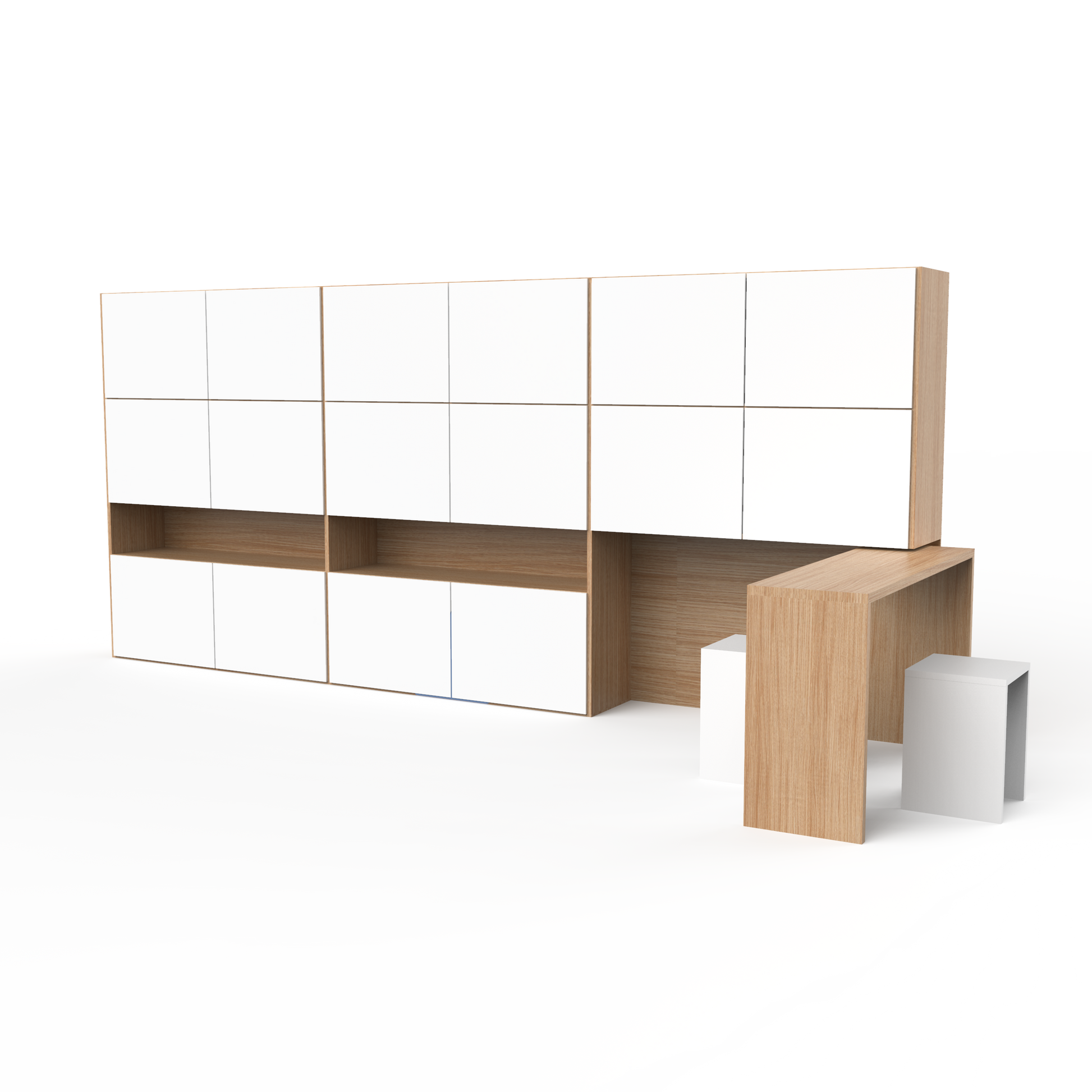Unsere intelligenten Produkte ermöglichen das Platz Sparen und sind ideal für Küchen, Home-Offices und ähnliche Wohnbereiche, in denen die Nutzung eines Möbelelements nur vorübergehend oder zu bestimmten Zeiten erforderlich ist. Der bewegliche Teil kann gezielt gedreht werden, wenn er in einer Ecke platziert wird, eine Bewegung, die normalerweise nicht möglich ist.